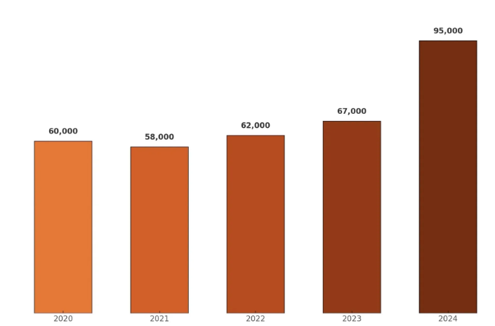 Aus der dargestellten Statistik geht klar hervor, dass die Einbruchsrate in den vergangenen Jahren eine anhaltende Zunahme verzeichnet.